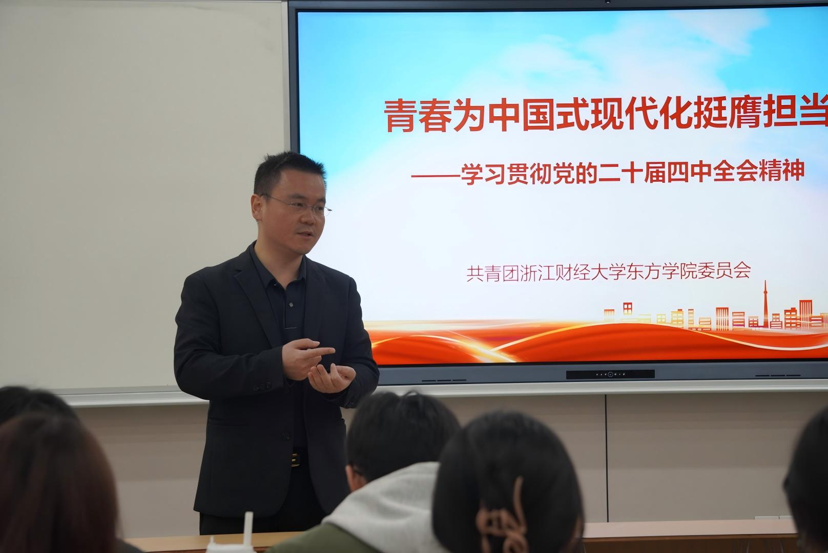 为深入学习贯彻党的二十届四中全会精神,切实提升青年学生骨干的政治素养与综合素养,11月28日,我院青马班成功举办“青春为中国式现代化挺膺担当——学习贯彻党的二十届四中全会精神”专题讲座。本次讲座由院团委书记宣刚主讲,第十期青马班学员参加。