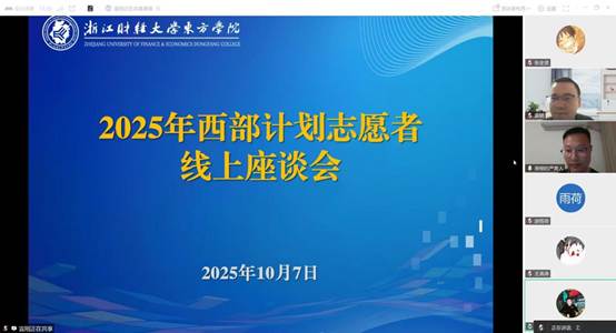 10月7日,我院召开2025年大学生西部计划志愿者线上座谈会。学院党委副书记汪风易、院团委书记宣刚,各二级学院团委书记、院团委老师,2025年西部计划志愿者出席会议。
