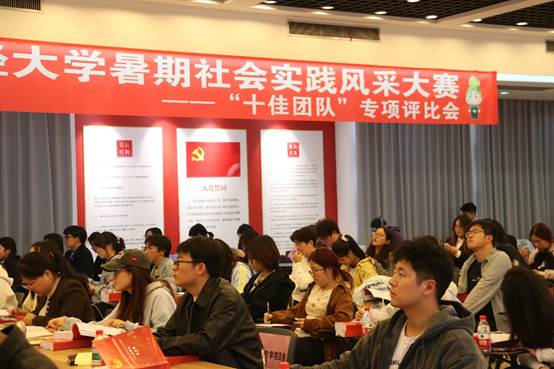 为深入学习宣传贯彻习近平新时代中国特色社会主义思想,大力弘扬“六干”作风,引导大学生在社会课堂中“受教育、长才干、做贡献”。10月28日,浙江财经大学暑期社会实践风采大赛暨“十佳团队”现场评比会顺利举行,法律与社会工作学院“烽火传笺八千里,山河铸魂八十载”实践服务团获校“十佳团队”荣誉称号。